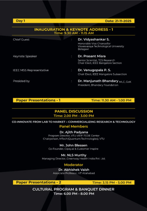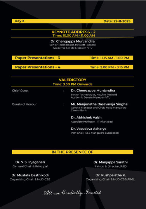 This marks the third IEEE international conference hosted by Sahyadri College of Engineering and Management. Last year, we successfully organized the IEEE COSMIC-2024, and in 2023, organized IEEE DISCOVER-2023 in collaboration with the IEEE Mangalore Subsection and IEEE Bangalore Section, further solidifying our commitment to advancing technology and research. We look forward to the vibrant discussions and collaborations that COSMIC-2025 will inspire.