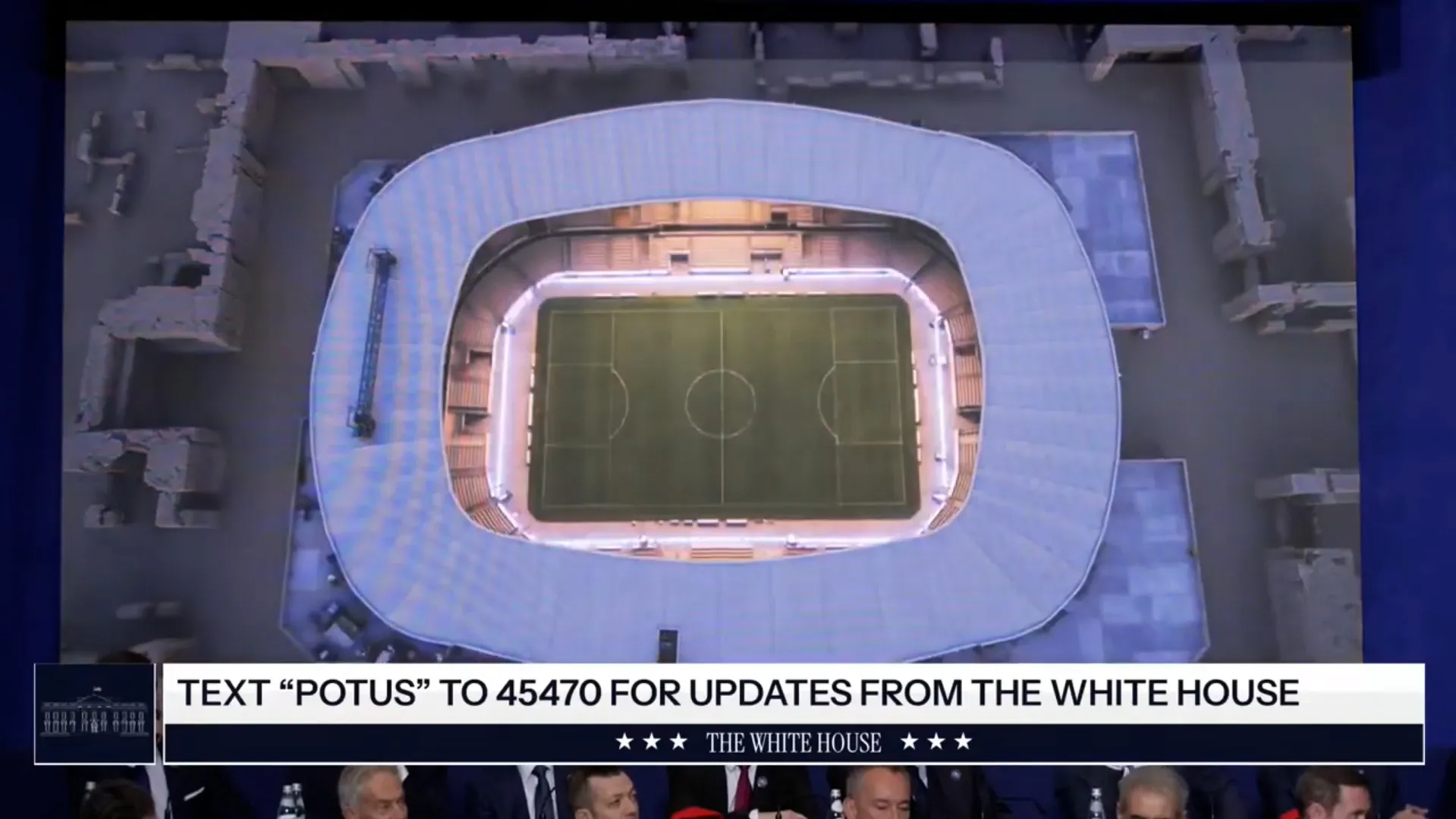 President Gianni Infantino announced the world soccer organization’s investment in the reconstruction of Gaza with an AI-generated video at a Board of Peace event.