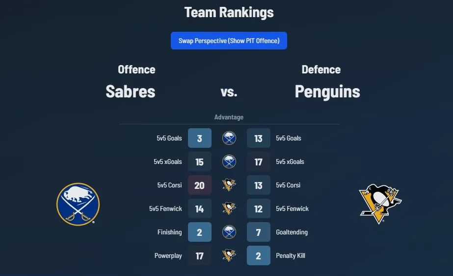 That could be an issue for Pittsburgh, or certainly an area to watch- we saw them get disconnected and overreact in a five-man tandem all chasing the puck like peewees after they overcommitted to a corner in the first place against Boston on Casey Mittlestadt’s goal. That caused Dan Muse to use his timeout to somewhat uncharacteristically shout and chastise his team over the lapse. The Pens didn’t give up a goal or play a sequence that bad again against the Bruins, but by that point the damage was done. Any slips like that tonight are more than likely going to wind up in the net with the way the Sabres have been playing in the offensive zone this season. It’s tough to play a completely perfect and clean game against NHL-caliber competition, especially for a team like the Sabres that has grown immensely with their confidence and ability to strike. The Pens and their attention to detail will have their work cut out for them tonight, how they’re able to handle that could tip the balance in this tilt.
