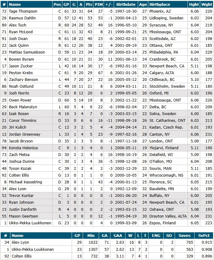 Rasmus Dahlin 8 Jan. 12 – Present 2 8 10