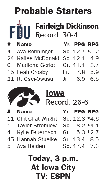 Ava Heiden was a first-team All-Big Ten selection at center and goes into Saturday’s first-round game against Fairleigh Dickinson leading the Hawkeyes with 17.4 points per game and shooting 64.7% from the field to rank third nationally.