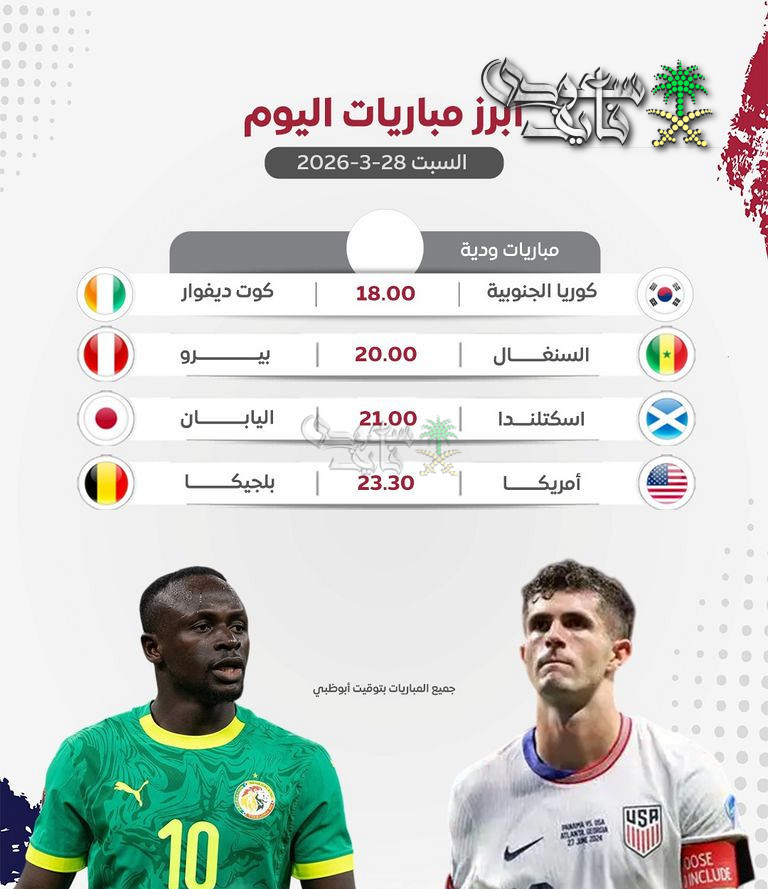 اليوم السبت 28 مارس 2026، يشهد عدة مواجهات قوية ضمن فترة التوقف الدولي، حيث تسعى المنتخبات لاستغلال الفرصة في تجربة خطط جديدة واكتشاف نقاط القوة والضعف قبل الدخول في التحديات الكبرى.